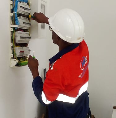 Projectamos e Instalamos Redes Media Tensão (MT), Baixa Tensão (BT), Eléctricas com UPS, Estabilizadores de tensão, Grupo Gerador, Sistemas de aterramento e protecção contra as descargas atmosféricas para redes de computadores. Todos dos nossos projectos bem como as instalações são efectuados em conformidade com as Normas Nacionais e Internacionais existentes no mercado.